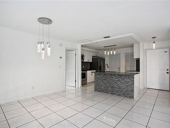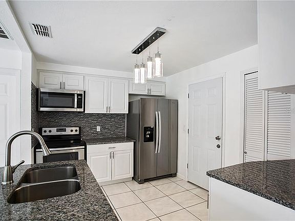 Completely remodeled and ready to move in house with 4 bedrooms, 2 baths and 2 car garage! New roof on 2019. This house has a remodeled kitchen with granite countertops, backsplash, island with breakfast bar and stainless steel appliances. Ceramic tile throughout. Great room with sliding doors to the huge fenced backyard. Split bedroom plan. Master bedroom with remodeled bath and walk in closet. 3 additional bedrooms and remodeled hall bath. Convenient location close to I-4. Come and see it today!
