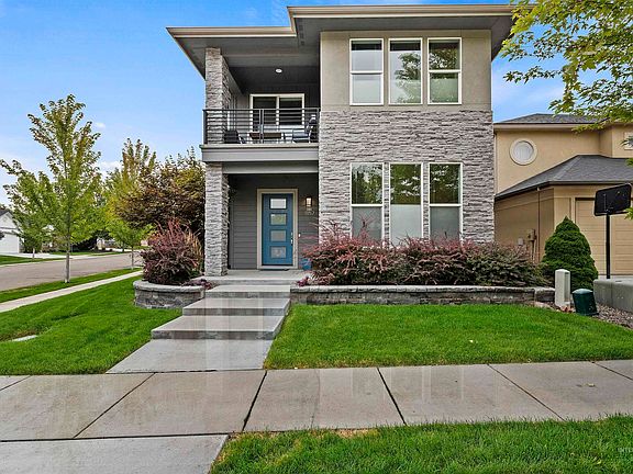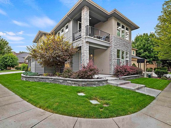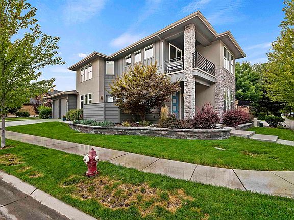 This gorgeous, architect-owned and designed home, situated in the highly coveted Promontory Ridge subdivision, is just minutes from I-84 and the Airport, as well as downtown Boise. It features a small, low maintenance yard which is perfect for "life on the go." Yet, the enclosed patio and upstairs balcony invite respite and leisure whenever desired. Once the leaves have fallen, the balcony offers a tranquil daytime view of Boise and the surrounding foothills, including Table Rock, which turns into a stunning display of the city lights at dusk, especially during the holidays. Tastefully decorated with high-end finishes, 9' and 10' ceilings, and rows of windows, this dwelling creates a bright, tranquil, and inviting place to call "home."
