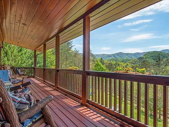 THIS PROPERTY IS AMAZING! This stunning, luxurious, custom built log home sits on 1.71 private acres and is only 2.2 miles from the Parkway in Pigeon Forge. It has a gorgeous view of the Smoky Mountains. Currently a permanent residence, but has enormous potential as an overnight rental. The great room is highlighted by the vaulted ceilings & stone fireplace, the kitchen features custom built cabinets, stainless steel appliances, granite countertops with eat-at bar, adjacent to the open dining room, & access to the back private patio. The large master suite has a huge walk-in custom tile shower, corner jetted tub, walk-in closet, & access to the side deck. The main level also has laundry room and guest half bath. The second level has another bedroom, a full bath with walk-in shower, & loft large enough for a futon and pool table. Downstairs is another complete living quarters. It has a full kitchen, bedroom, full custom bath, a living room (which would make a perfect theater room), an ADDITIONAL ROOM to do as you please, second laundry with a stackable washer/dryer, another 257 sq ft garage that could be finished with minimal effort, & walk out entry. Enjoy the evening sunsets from one of the covered decks while sitting in hot tub, or relaxing around the fire pit. It even has a beautiful stone gated entry, split railed fenced-in large parking area & level yard, security system.
