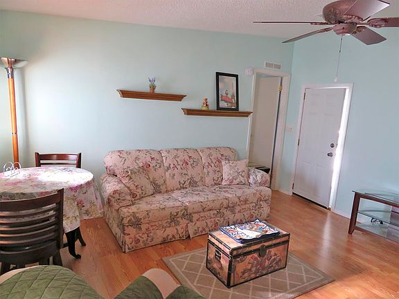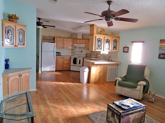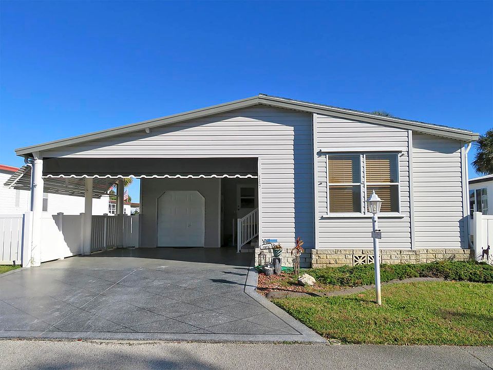 BY APPOINTMENT ONLY. Great TWO Bedroom, TWO Bath Home has a wonderful split floor plan. Pictured furniture stays. Open living space, nice blinds throughout. 2017 HVAC, 2016 Roof. Beautiful tiled Florida room with separate a/c, access to the fenced side yard and a doggie door with a ramp. How convenient is that! Wide drive and a large golf cart shed are definite pluses. Equipped with hurricane shutters. Patio in the back for your grill, just another day in paradise!