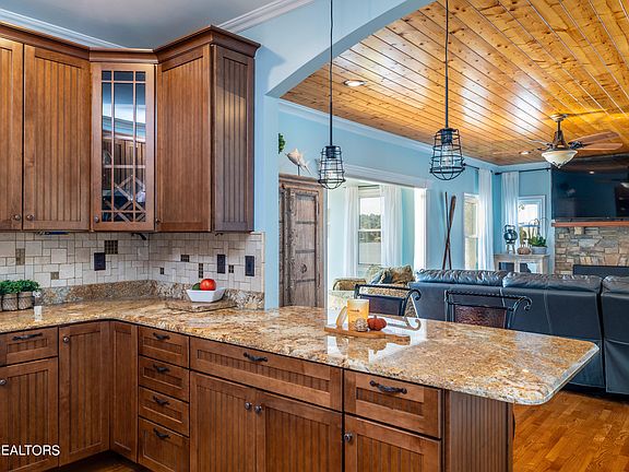 Emersed in all the splendor of Ft.Loudon Lake on the main channel. Nothing is left to want, it has it all! This property checks all the boxes, double dock with lifts, a few steps from home to the water (grade is subtle), home is updated with all the amenities, quality furnishings which include décor, kitchen equipment and accessories, linen, and grill (instantly suitable for air bnb or lake enjoyment). Authentic cottage style basement ranch home is adorned with stone and shake shingle. Gourmet kitchen offers stainless appliances, ample amount of granite counter tops, tiled back splash, abundance of custom cabinetry with built in pantry and roll out shelves. Heart of the home features a wood burning stone fireplace, generous size living room is situated between open kitchen, eat in bar, and enclosed sun room with panoramic view of lake thru wall of windows. Sunroom and Main Bedroom share vaulted deck overlooking sparkling water. Main bedroom is dreamy day and night, vaulted ceiling adorned with hardwood floor and ceilings. Ensuite includes garden/spa tub, shower cave with built in shelving, high vanity with granite, walk in closet. 2nd Bedroom on main level has a deck that views the water and walk in closet full bath around the corner with furniture style vanity and granite. The lower level features another full bedroom with en suite. Enjoy the game room area watching football or playing pool while getting the grill ready for dinner with friends. Full bath off game room area (fully tiled for dripping feet to change and refresh after lake fun). Just a few steps away enjoy time with family and friends on the covered dock with two boat slips one which is 32' long with 8000 lb. lift and the other is 26' long with 5000 lb. lift. Ski lift to the side. Newly installed generator is large enough to run the household in case of emergency. End your day on your boat or sitting on your dock enjoying the sunrises and sunsets. Buyer to verify all information to satisfaction.