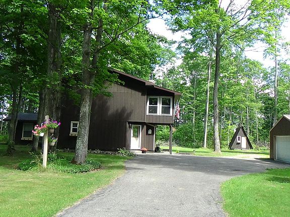 Unique home on 5+ acres, close to town with the feel of the country. 4 bedroom 2 bath home, Large bedroom on 2nd level offers great sun room to take in the views while you enjoy your coffee. 30x40 Pole barn and 2 other outbuildings.