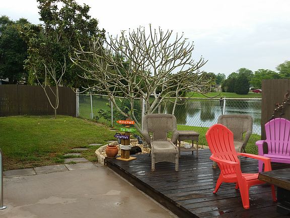 Lake front home with 3 Bedrooms, 2 Baths & 3 Car Garage. Built in 1981 CBS home. The extra permitted 1 Car Garage added in 2016 with 435 sq ft with double doors & window.All tiled floor, newer kitchen with granite & back splash, split floor plan, with Porch entrance. Screened covered patio great for relaxing with the lake view. Fenced back yard with wood deck & small pool. A/C is from 2015, house ready for new owners. Close to Shopping Centers & restaurants. All sizes are approximate.
