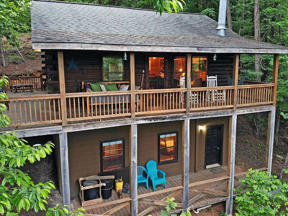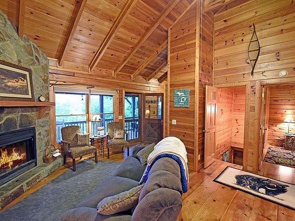 This charming 2 BR 2 BA real log cabin is being sold fully furnished and is currently a successful vacation rental program generating nearly $40k in the last 12 months ! Rental history is available . Located in the quaint community of Cherry Log, this private lot is almost 1 acre with a beautiful long range mountain view. The cabin features all wood interior, fireplace, updated HVAC, and over 704 Sq Ft of outdoor porch and deck space creates a perfect space for a hot tub, grilling, and enjoying the best of outdoor living! This property would make the perfect vacation home or rental investment. Located near USFS- Hiking, biking, fishing, and many more outdoor activities. only minutes from Downtown Blue Ridge . Currently rented- Available to be viewed Aug 4-8