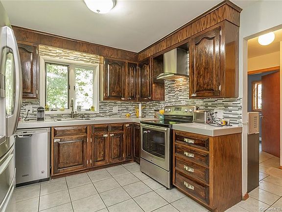 Great value in award winning school district. Custom Contemporary home set back from the street with open floor plan. Features include 4 bedrooms, 3 full baths, Living room with fireplace and vaulted ceiling. Updated Kitchen with marble countertops and stainless appliances. Walk out to large rear deck overlooking yard. Updated Master Bathroom and walk in closet. The house shows beautifully and is in move in condition.