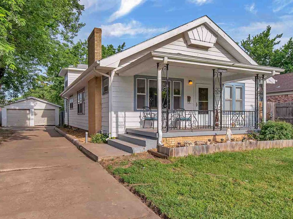Great Indian Hills Bungalow with large front porch. 3 Bedrooms and 1 Bath on the main floor. Living room and Dining room have hardwood floors. Both Living Room and Sun Room have decorative fireplaces. Stain glass windows in the windows on either side of the living room fireplace. Large unfinished basement and a detached 2 car garage. All appliances stay. Listed by Dana Sawicki