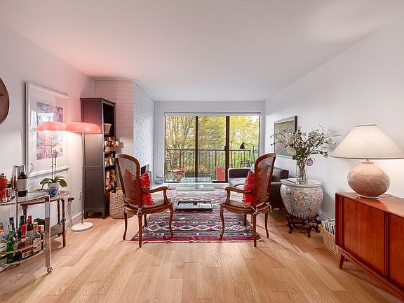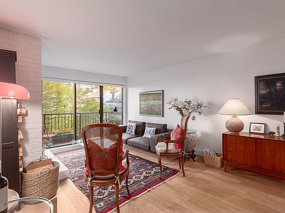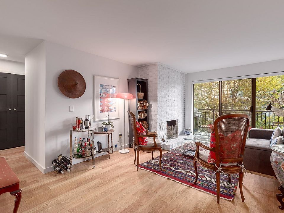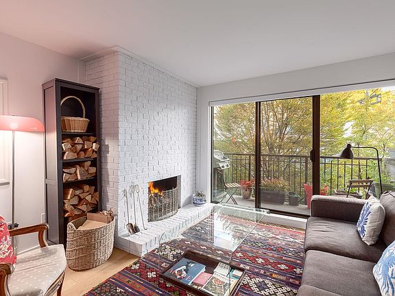 This design-forward condo stunningly renovated in 2016 showcases an expansive layout that can serve as a full TWO BED or works well as one bed with DEN/OFFICE. This home is warm, contemporary and features a wood-burning fireplace and a lovely balcony for BBQ's and entertaining. Some of the updates include stunning white oak floors, modern kitchen w/ s/s appliances + induction range, dimmable pot lights for the perfect ambiance, extensive storage, fully-tiled bath with mid-century vanity, painted subway tiles in kitchen + bath, + hammered pendant light to showcase the dining area. This building has a fine reputation with extensive updates to the exterior including windows, doors, parking membrane, plumbing, boiler, roof, elevator + hallways.