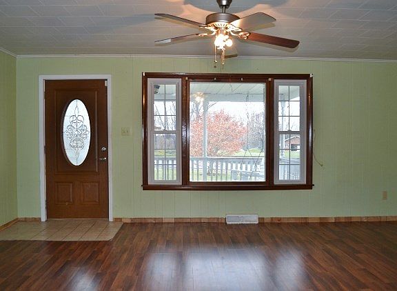 Happiness is...this country cottage offering 3 bedrooms. This home is located outside the city limits but minutes from town. Newly renovated with new vinyl siding, fresh paint, new kitchen, replacement windows, and laminate flooring. The bedrooms are spacious and all include large closets. Great investment or perfect starter home for a small family. Plenty of storage with this one. Back semi private covered patio. Easy to view, warranty available.