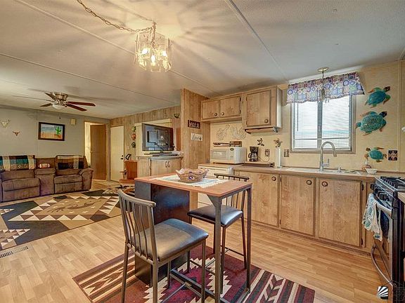 Discover your cozy retreat in this well-kept 1985 single wide mobile home. This charming home features 784 sq. ft., 2 bedrooms, 2 baths each with walk-in showers, an enclosed AZ room, & comes partially furnished. Inside you’ll find laminate wood flooring, ceiling fans throughout, & all appliances including washer & dryer. Outdoors has 2 storage sheds, a covered carport, & a covered patio. The community center provides activities, plus a year-round heated pool & spa. This delightful home awaits your arrival!