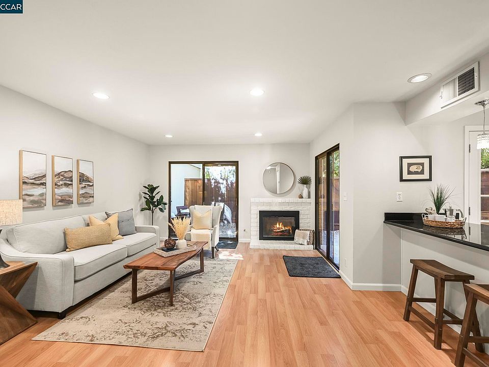 This rarely available, two story townhouse in Danville Green includes 3 bedrooms, 2 1/2 baths and approximately 1301 sq ft of living space, plus a 2 car carport with additional storage closets. Upon entering, you'll immediately notice the sizable living area with laminate flooring, gas log fireplace and two sliding glass doors allowing for abundant natural light and opening to a private rear patio. A formal dining area is just adjacent to the living room. The kitchen has been updated with modern cabinetry and granite countertops, with a bar top opening to the living area. A convenient 1/2 bath, huge under stairway storage closet and full size laundry area round out the main level. Upstairs, you’ll find all 3 bedrooms including a primary suite with ample closet space. Both bathrooms have been beautifully upgraded with gorgeous wood vanities, luxurious tile flooring, granite countertops and modern fixtures and finishes. Outstanding location, convenient to freeway access, Danville Livery, Osage Park and the Iron Horse Trail. Community Pool & Clubhouse.