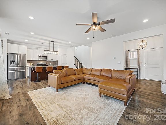 Welcome to this stunning two-story home featuring 3 bedrooms, 2.5 bathrooms, and a 2-car attached garage, built in 2022 and maintained in pristine, like-new condition. The spacious main floor is perfect for entertaining, with a seamless flow from the living room to the dining area and into the beautifully appointed kitchen. The kitchen features sleek stainless steel appliances, a large center island with bar seating, solid surface countertops, ample cabinetry and pantry, and stylish lighting.