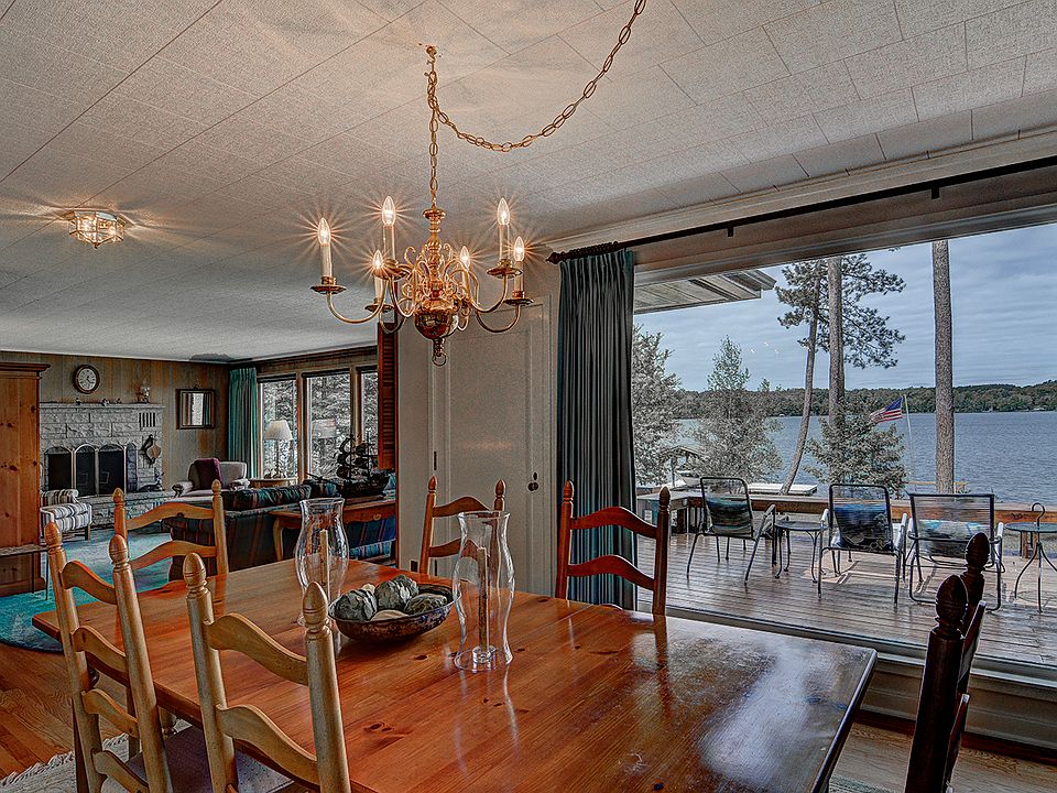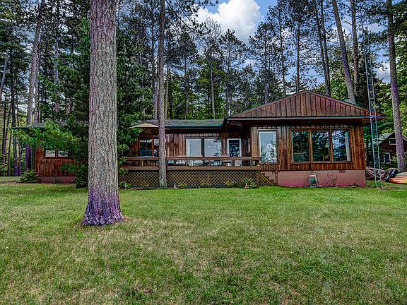 CATFISH LAKE ESCAPE- Jump on this fantastic Catfish Lake home being offered for the FIRST time in decades! Situated on 100' of level frontage, this property is situated on the most sought-after stretch of real estate on the Chain of Lakes. With sandy frontage, this West facing property has been meticulously maintained and the garage and outside storage areas are loaded with the necessities of lake living. This year-round residence has a newer roof, new septic, gutters and a drilled well. Enjoy amazing lake views and sunsets on the 12'x30' deck as you relax in this beautiful setting. The home has a high quality permanent pier, boat pavilion and an electric boat lift. The interior boasts a fresh and clean decor with incredible views. Relax around the wood burning fireplace on cool evenings. It is rare to find a lake home with privacy and incredible lake views that is just minutes from Eagle River. Build life long memories with friends and family in this beautiful home!