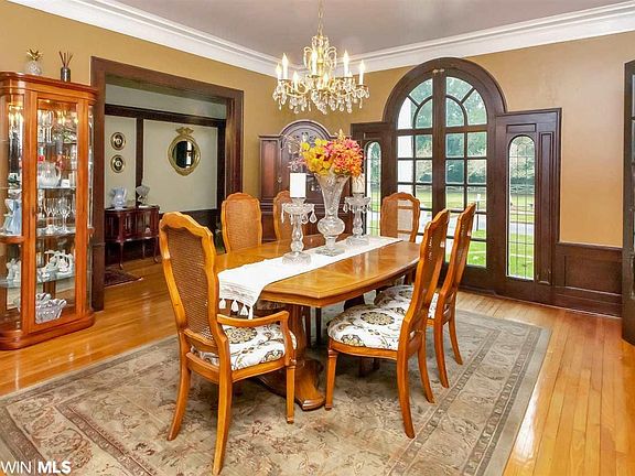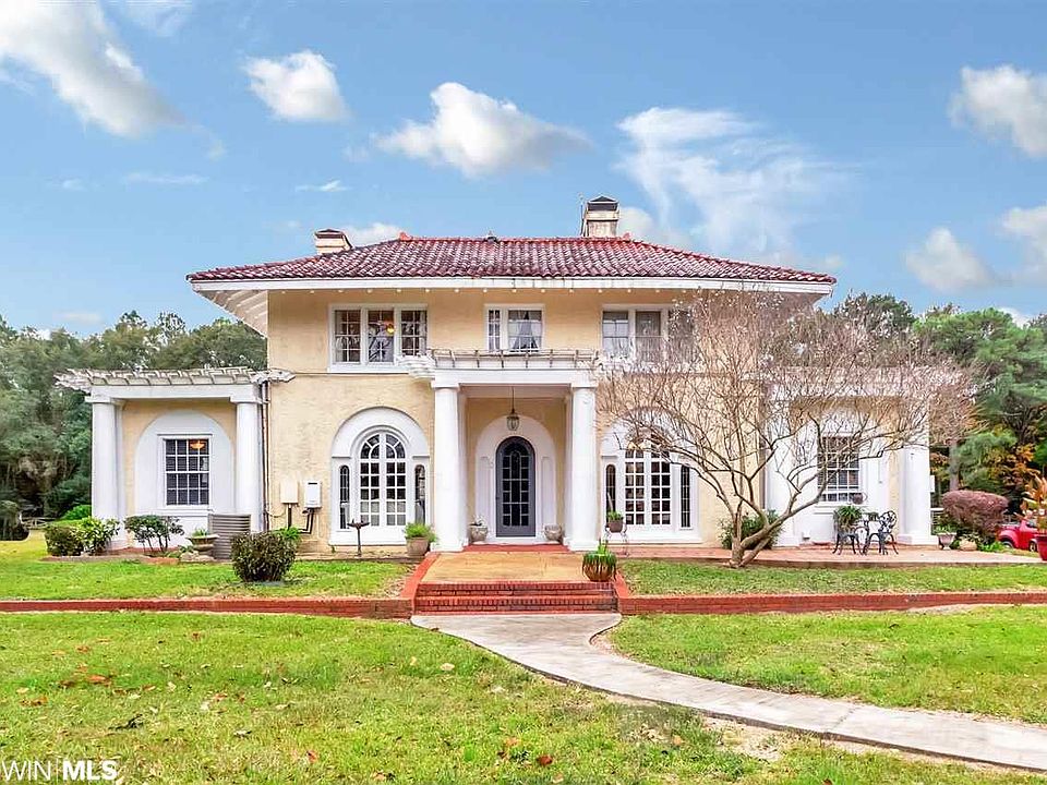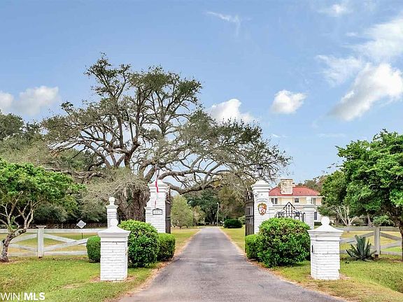 Welcome to "Casa Blanca" all you need in Ingram Bergam and Humphrey Bogart. Stunning Bishop Manor Estate. Mediterranean style estate built by a wealthy business man named Bishop from Chicago back in the 1900's who discovered beautiful Alabama and built himself an estate with several acres. Now this house sits on 4.8 +/- acres. Incredible estate hidden away in Irvington. Amazing heavy molding, hardwood floors. High ceilings, archways throughout. Beautiful medallions on the ceilings in every bedroom. Gated and secure. 6 fireplaces, one gas and gas start all the rest wood burning. Hardwoods and brick flooring throughout. Master has sitting room. All doors have transoms and wonderful antique molding. Front and back of the house are identical with ornate French doors that open up to the porches for great south breezes and great for entertaining and weddings. The house has beautiful circular staircase and extra sitting room. 2 HVAC systems. Tankless hot water heater. Workshop. Pergola, 4 car garage and an additional detached 2 car garage. 2 guest houses one bedroom one bath with a kitchen. Also a covered salt water pool- the biggest in Mobile county at 80' x 40' with new filters and his and hers bathrooms and big screened area for entertaining or for watching football. TV included. Listing company makes no representation as to accuracy of square footage.