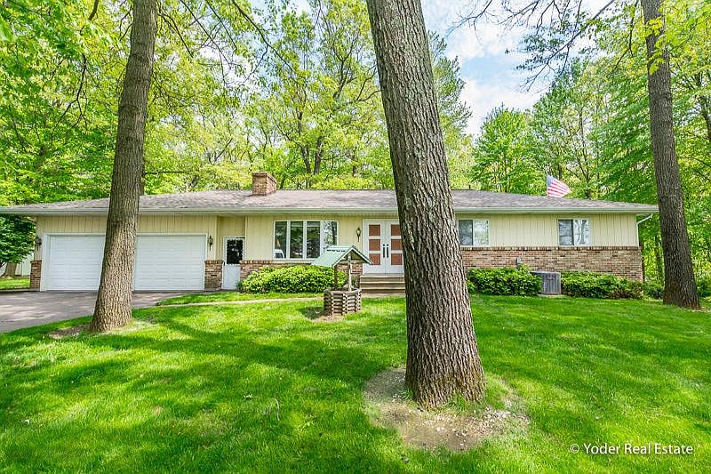 Nestled in a private, wooded enclave in Greenville sits this lovely 3 bed 2 bath ranch home. Incredibly well-built & cared for, this home is sure to be one that you can comfortably live in for years to come. Step through the front door to find a clean, open floor plan that is perfect for carefree living. Two fireplaces provide a place to cozy up to in the cooler months, while the spacious bedrooms provide retreat. Step down the spiral staircase to a finished walkout basement, where family gatherings & game nights will be held. The 30x48 pole barn is a hobbyists dream, providing ample space for many projects. The upcoming summer months will be enjoyed to their fullest in the 2.27 acre yard. Full of mature trees & a flower garden, relax on the spacious back deck & breathe in the fresh air.