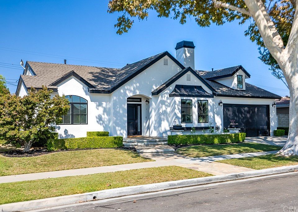 Fully renovated and expanded Rossmoor Modern Revival French Tudor Pool Home, located away from freeway on quiet street near Rossmoor Park boasts 4 bedrooms and 2.5 baths, Direct garage access to large 2 car garage equipped with 240V/50amp outlet for electric cars and huge attic storage space, plus a detached bonus room, great for home schooling, office, guest rm, game or pool room, freshly painted interior and exterior, new white oak engineered flooring, 9 foot ceilings, energy efficient LED recessed lighting, in wall audio/internet wiring, NEST smart thermostat and doorbell, wireless security system w/HD cameras, large attic storage space, dual pane windows with new modern zebra shades, sky lights in kitchen and master bath, heated pool, mature landscaping for backyard privacy, outdoor natural gas built-in BBQ, shaded outdoor seating area, beautiful gas fireplace in living room, dining room, custom built-ins in family room w/fireplace, inside laundry room, gourmet open concept kitchen with island, professional stainless steel appliances, large Thermador fridge, 6-burner gas range with pot filler, double oven, beverage fridge, convection microwave, walk in pantry. The truly elegant Master suite separated from secondary bedrooms and has sliding doors to the backyard, walk-in closet, plus wardrobe closet, dual vanity master bath with relaxing soaking tub and large shower. Award winning Los Alamitos school district and close proximity to Rossmoor parks, shops and restaurants.