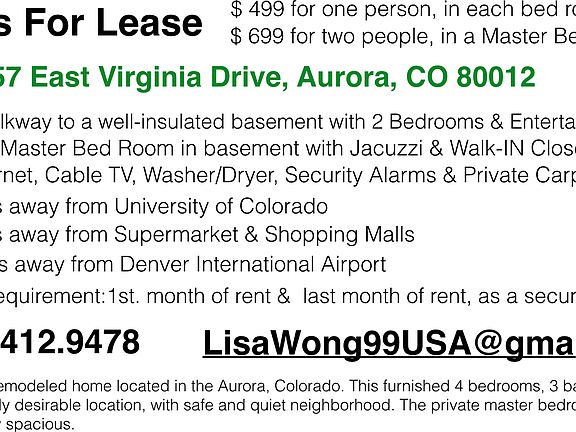 This 2608 square foot single family home has 4 bedrooms and 3.0 bathrooms. This home is located at 11571 E Virginia Dr, Aurora, CO 80012.