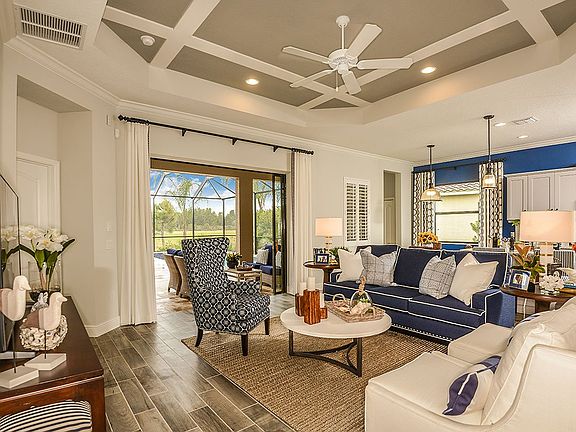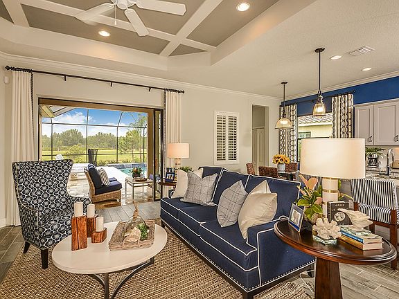 *Base price does not include the homesite premium or design options.*Guests and family alike will love the Endless Summer 4 by Neal Communities. The open center of the home holds the great room, formal dining room, breakfast nook and kitchen with island and walk-in pantry. A large covered lanai at the back of the home, reached through an optional pocket slider in lieu of standard sliding glass doors from the great room, comes with options for an outdoor kitchen wall or pool bath. A den off the great room is entered through attractive French doors. In the master suite you'll find a bedroom with optional coffered ceiling, two walk-in closets and a spacious master bath with double-door entry, dual sinks, walk-in shower and water closet.Explore the possibilities at Verandah in Fort Myers today. Call or come by to learn more.