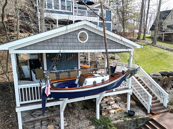 LAKE LIVING at itas finest! Gloriously renovated home w/ hardwood floors, chef's kitchen w/sueded granite counters& pantry. Dining room addition w/wall of windows and 180deg lake views. 3 beds + 2 full baths on main. Newly finished lower level w/10ft+ ceilings, second family room, amazing yacht club style wet bar, 1/2 bath and designer laundry room. Also a grand primary suite, w/walk-in closet and large bath w/heated floors & dual head shower. On the lakefront is the most unique boat house on Grandview w/nautical touches, boat bar, kitchenette & storage. Huge dock w/boat lift. Grandfathered-in Guest House above detached garage/workshop has 2 bedrooms, 1 full bath, living room and small kitchen. Professionally landscaped w/irrigation