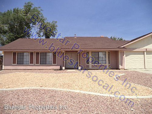 A MUST SEE - Great Single Story Located in Victorville. This home offering 4 Bedroom 2 Bathroom and a 3 car garage. Beautiful front landscaping. Spacious kitchen with lots of cabinets. Large living room with Fireplace, Rear Fenced Yard, Attached Covered Patio, Large Lot with extended Driveway for extra Parking. To View this home Call Today! Bluestar Properties @ 760 241-5995 Ask for Yadira Ext. 224 Or Visit Us on Our Website @ www.bluestarsocal.com (RLNE4172536)