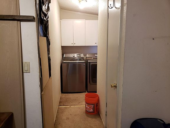 Cute manufactured home on a permanent foundation. Home does need TLC but has a lot of potential. Wood burning stove, fenced, trees giving the property a lot of shade, roof is approximately 10 years old. 960 square foot workshop,set up for electric and plumbing. Home is being sold AS IS!! Cash only!!