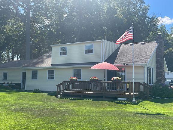 WHAT A BARGAIN to have 78 feet on Pine Lake a 660 acre all sports lake: Very quiet beautiful lot with a fantastic veiw: 1700 sq ft Cape Cod Home featuring a large Living Room with a beautiful fireplace and Patio doors to a spacious deck and panoramic view of the Lake and beyound. Kitchen has plenty of room and a breakfast bar to a convenient dining room. Main level bedroom and two more bedrooms upstairs. Main floor laundry. Also a large 1-car additional garage extra deep
