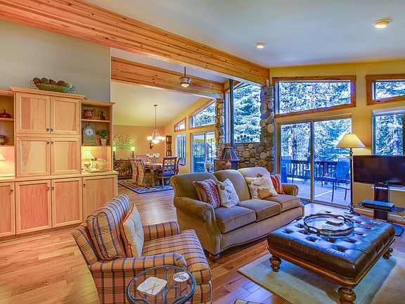 Impeccable Tahoe Donner home! Completely modernized and south facing for all day sun. Enjoy the open feeling provided by the vaulted ceilings in living and dining rooms surrounded by floor-to-ceiling windows overlooking your private forested backyard. This home comes complete with gourmet kitchen, two master suites, two additional bedrooms, library on main level, separate game room, and incredible storage. Custom features including heated floors in the bathrooms, central vacuum, and more! Click on the "View Virtual Tour" below to see a detailed walkthrough video!