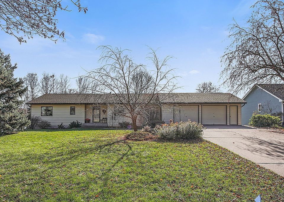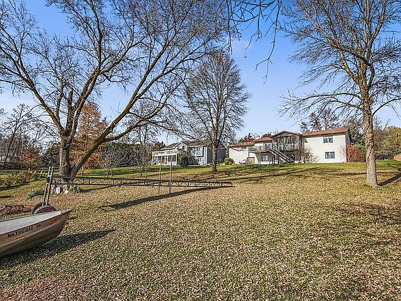 Custom lake home with 123' of prime level sandy shoreline south facing views on Chisago Lake. Large eat in kitchen with loads of counter space, screen porch, walkout lower level, loads of storage, main level living, Tuck under garage on lake side for storage/work shop!!