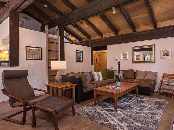 Welcome home to this delightful REMODELED retreat nestled on a large .40/acre lot located on prestigious Chamonix Road and adjacent to open space in lower Tahoe Donner. This lovely and updated two bedroom, two bath retreat plus sleeping loft offers a bright, open floor plan with new hardwood floors, remodeled baths, updated heating system, cozy wood burning stove and gorgeous forest views!Enjoy the private master suite with lovely jetted tub and spacious second bedroom with room for all! The lovely updated kitchen offers almost new appliances and access to year 'round living on HUGE sunny front deck with gorgeous views. Spacious carport, excellent rental history and turnkey opportunity! This is the mountain retreat you've been awaiting!