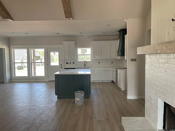 New construction with long front porch on two acres. Beautiful open floor plan with vaulted ceilings in living area, fireplace with built-in cabinets. Kitchen has huge bar with granite countertops and large walkin pantry.