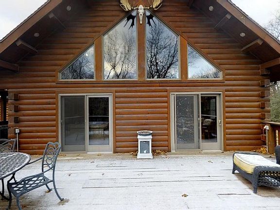 Amazing Kuhns Bros true log home secluded on 9 beautiful acres of woods! As you drive down natures lane this exquisite one of a kind log home awaits you. The open concept home with white birch wood floors throughout is spectacular! 2 story great room features floor to ceiling windows that allows a ton of natural light to shine through, and the double sliding glass doors open up to an over sized deck in the front of the home that overlooks the property. Cozy up next to the stone fireplace on those chilly nights. The master suite offers a full bath with a jetted tub, huge walk-in closet,vaulted ceiling and sliding glass doors that lead to a balcony deck that overlooks the very private back woods with walking trail. The upper level features a loft area. The full walk-out basement offers plenty of space for entertaining with an additional living room, office and guest room. Roughed in for a third bathroom to finish your way.