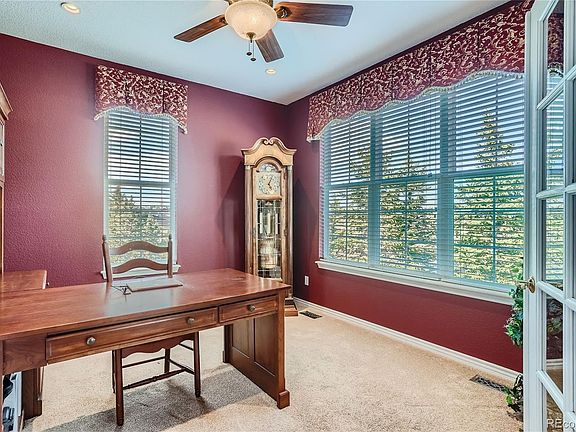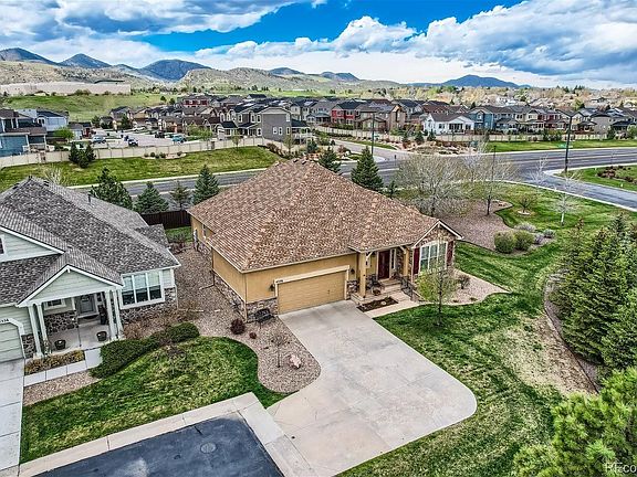 Welcome to your dream home in the sought-after Eagle Point neighborhood, where location meets luxury living. Nestled near the pristine fairways of Meadows Golf Course, this stunning property epitomizes Colorado charm and elegance. Step inside this exquisite ranch-style residence boasting 4 beds, 3.5 baths, and an exec office, offering ample space and comfort for your family. As you approach, the inviting front porch beckons, perfect for soaking in warm CO mornings with a cup of coffee and a good book. Entertain effortlessly in the open-concept layout, featuring a spacious kitchen, dining room, and dinette, equipped with upgraded stainless steel appliances, including double ovens, and expansive granite counters for culinary enthusiasts. The main floor delights with a primary bedroom retreat, complete with a luxurious 5-piece en suite bathroom featuring a jetted soaking tub and a generous walk-in closet. An additional bedroom and full bath on the main floor ensure convenience and versatility. Natural light floods the home, accentuating the beautiful hardwood floors and offering captivating views of the surrounding landscape. The basement level presents a secondary primary bedroom space, a bathroom, a flex room/4th bedroom, and a wet bar, ideal for extended family or guests. Enjoy cozy evenings by the gas fireplace in the family room or entertain in the game room, all while appreciating ample storage for your family's treasures. Step outside to the manicured lawn and patio, where you can savor majestic mountain views and embrace the serene surroundings. With lawncare/snow removal taken care of, you can lock up and leave worry-free, allowing more time to enjoy the remarkable Colorado lifestyle. Conveniently located less than 2 miles from Chatfield & Dakota Ridge High Schools, as well as an array of shops and restaurants, this home offers both luxury and practicality. Don't miss the opportunity to make this your new haven and experience the epitome of Colorado living.