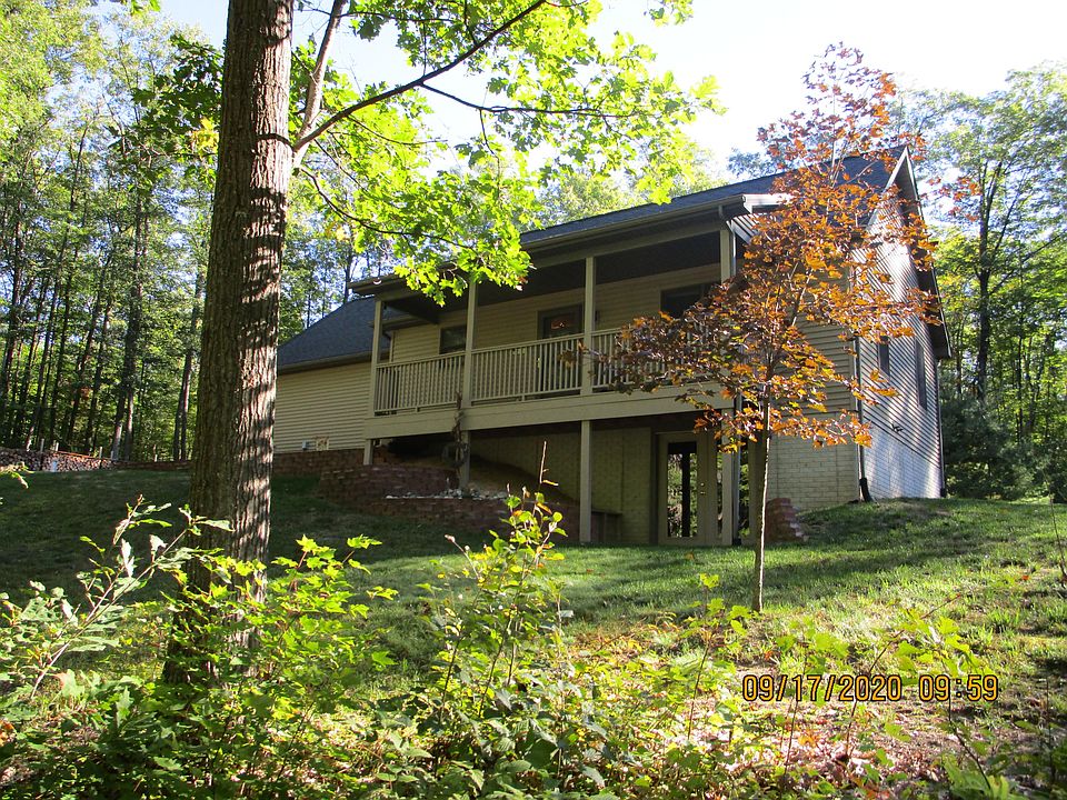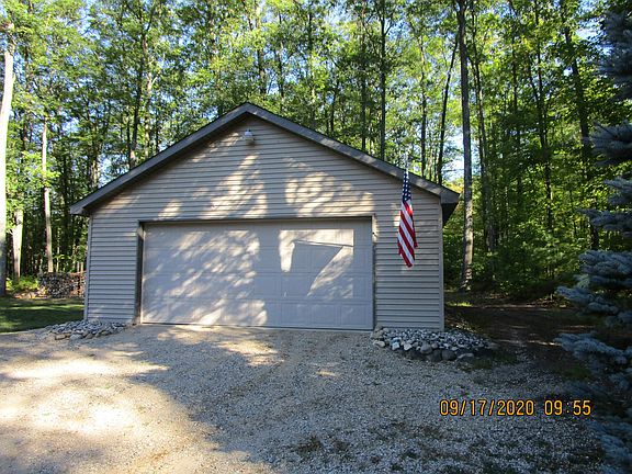 This energy-efficient home with tongue and groove walls, overlooks 10 wooded acres with plenty of storage in the attached garage and 2nd garage. Home is minutes to ORV trails and offers prime hunting and includes tripod deer stand. The covered porch is perfect for morning coffee while spotting wildlife. Landscaped yard transitions to wooded property with views from both levels of the home. The unfinished walkout basement offers opportunity to customize additional bedrooms or living space. Built well with Anderson windows, you can enjoy the central air in the summer and an automatic generator offers peace of mind and comfort year round. Located in the woods, this home has good internet and cell signals but still just minutes to ORV and snowmobile trails. Acreage is primarily wooded.
