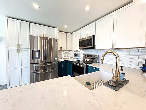 Welcome to Milwaukee Court! This home features hardwood flooring throughout all of the living space and a fantastic remodeled kitchen with quartz countertops and new cabinets with plenty of storage. Step into the living room and see high ceilings and a wood burning stove that can heat the entire home. Upstairs you'll find two bedrooms with their own full bath. The master bedroom has it's own walk-in custom shower that is STUNNING. Enjoy time outside grilling and chilling on the porch or a relaxing night in the hot-tub. After you tend to the planter boxes you can put your garden and yard tools in the shed out back. The 2-car garage also has plenty of electric boxes for doing home projects. Situated on a quiet cul-de-sac with friendly neighbors this is a great spot for your family. The neighborhood is surrounded by parks. Come see it in time for Spring! Available immediately Basement is unfinished Laundry in-unit Fenced in Backyard Tenant covers all utilities Pets OK