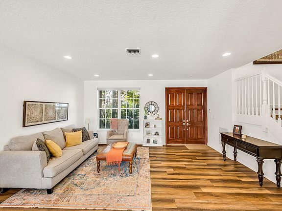 This home is an absolute gem that has undergone a fresh update. With a new roof in 2021, brand new primary bathroom & newly painted exterior & interior. The kitchen has been completely updated & features top-of-the-line GE Cafe appliances, including an induction cooktop with WiFi, & an ice maker. The home also boasts new designer wood plank floors, accordion shutters throughout for hurricane protection, a newer water heater & AC on the second floor. Upstairs are 4 bedrooms plus a playroom! It has an extended patio - perfect for hosting gatherings & entertaining guests. The yard is fully fenced & large enough for any size pool. Saturnia has access to 2 A+ schools across the street & a beautiful park with a golf course, lake, waterpark & boating within a mile. This is your next home!