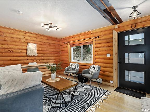 Wonderfully updated log home nestled in the serene beauty of Coal Creek Canyon with sweeping views of the surrounding natural landscape! Situated on 1.45 acres of picturesque land, this versatile property offers a harmonious blend of rustic charm with modern touches. Four bedrooms and ample living space, this home provides an ideal retreat for those seeking both tranquility and convenient access to Denver. A new modern high end front door greets you with an immediate sense of "WOW, what a cool home!" Updated throughout, this is a move in ready home. The entry flex space is perfect for a formal sitting room or spacious elegant dining room. The kitchen boasts butcher countertops, stainless steel appliances, and a stylish subway tile backsplash. Enjoy wonderful mountain valley and distant peak views from the living room and deck, a wood-burning stove adds a cozy ambiance. Dream of watching the snow fall silently on a starlit night or enjoying a morning sunrise coffee out on the wraparound deck. Upstairs, you'll find three bedrooms including the primary suite that boasts an ensuite bathroom. The walk-out basement is an incredible "extra" that houses a wet bar, fourth bedroom, and another bathroom. The outbuilding is great storage space, presenting endless possibilities to customize it according to your preferences and needs. Just a few minutes to yummy mountain restaurants in Wondervu and kayaking on Gross Reservoir. Peaceful mountain living at it's best, come see this home today! Available for quick possession, imagine celebrating your new mountain home with friends and family over New Years!