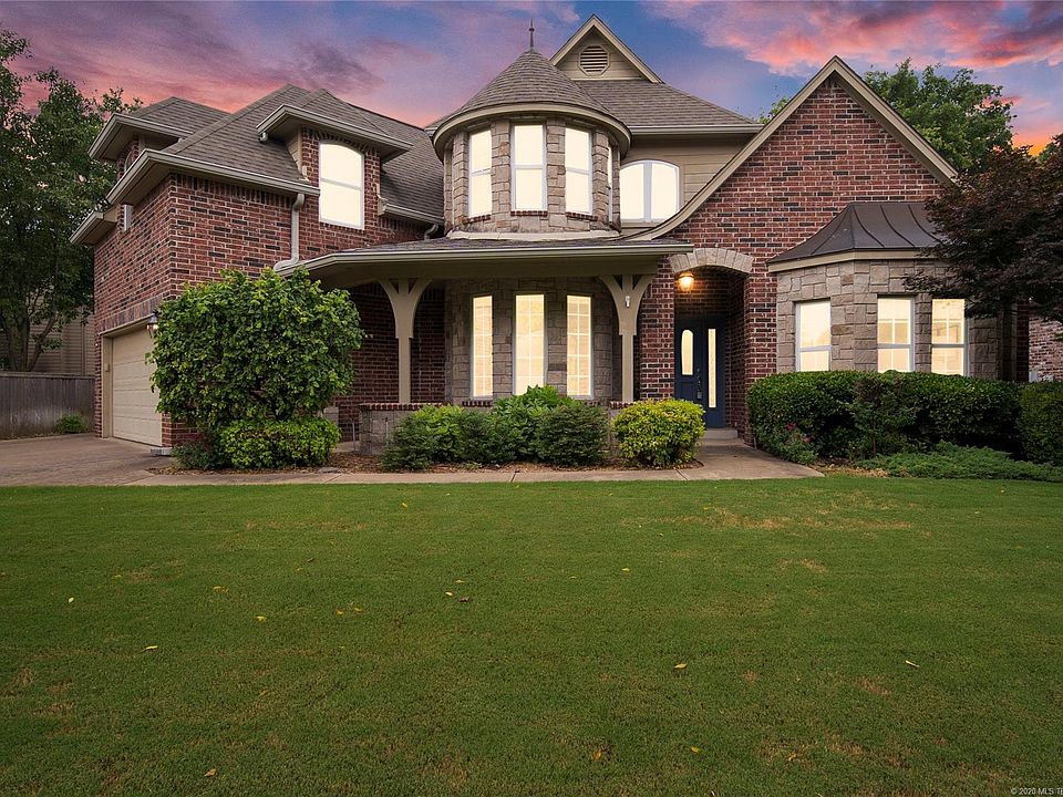 Gorgeous Bixby North home in the highly sought after Graystone! Hardwoods on the main floor welcome you w/ a showstopping grand staircase, office & dining. Downstairs is the private master w/ dual closets, large tiled shower, bathtub, dual sinks. Low maintenance backyard features wood burning/gas log fireplace, mosquito misting system, massive outdoor covered living area. All bedrooms have private baths & there is also a family loft area. Well maintained 1 owner. contract fell at no fault of the sellers.