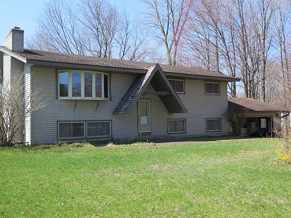 Enjoy the peace and quiet that this 4 bedroom 2 1/2 bath home has to offer. Situated on 10 acres this home has a very large master bedroom (once was 2 bedrooms) with bath, 2 fireplaces both wood burning (living room and family room) and a lower level bedroom with a half bath. Out side you will find a 24x40 pole barn with electricity and a 24x32 barn with loft, electricity and water. The land features approx 1/2 acres of blueberries. You are sure to enjoy this peaceful setting.