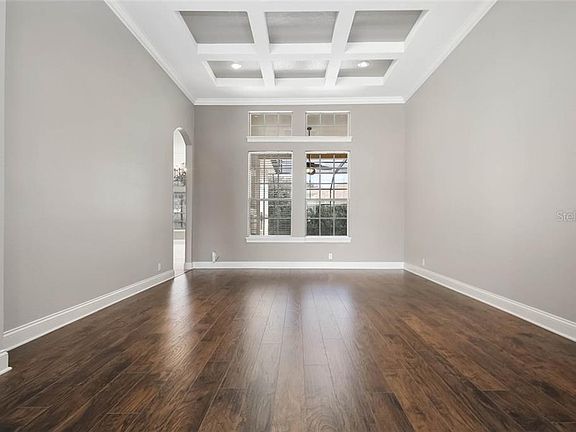 - Interior Features: Ceiling Fans(s), Eating Space In Kitchen, Master Bedroom Downstairs, Split Bedroom, Crown Molding, Kitchen/Family Room Combo, Coffered Ceiling(s)