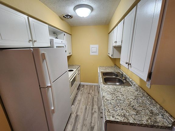 Two bedrooms, living/dining combo, kitchen, and bath. Tenant pays electric. Includes stove, refrigerator, disposal, dishwasher, coin op laundry, 2 window a/c units.
