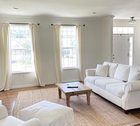 This beautiful warm & welcoming 4 bdrm, 2.5 bath Colonial in desirable Ocean Acres is now ready for you! Step in from the covered front porch & onto the beautiful hardwood floors that spread throughout the entire 1st floor. Spacious rooms throughout the home include: living rm, dining rm, kitchen with eat-in area, granite counters, s/s appliances, 42 in cabinets & a pantry closet. Other features include 9' ceilings, crown molding & recessed lighting. The bright & airy family rm w/vaulted ceiling has built in books cases surrounding the gas fireplace. Sliders lead to the large Trex deck & fenced in yard. The 2nd floor has a lovely primary bdrm suite w/vaulted ceiling, walk-in-closet & bath. There are 3 additional bdrms & full bath. The home also has a laundry rm, 2 car garage & full bsment