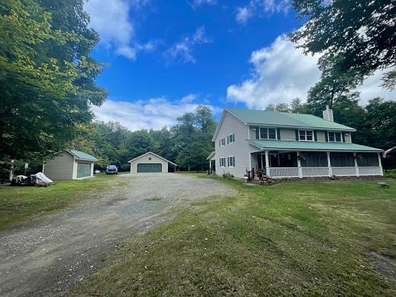 Live, Work and Play here! This beautiful home on 156 Acres in the Blue Wilderness area of the Central Adirondacks will not disappoint you. LIVE year round in the 2816 SF home, open concept living area with nice woodwork, wood flooring, woodstove, well appointed kitchen with island, large dining area, 6 large bright bedrooms, 2 full baths, +1200 SF of outdoor living spaces, including a screen porch , 3 season sunroom with a BBQ porch, and a large open air deck. All great for entertaining guests too. WORK from home here with a separate 1456 SF garage and finished, heated Work Space with large windows and a bathroom, w/fiber optic internet available. Now PLAY on your 156 Acres, w/ATV trails, hiking, hunting, snowmobiling, exploring the land and your very own secret pond! A true ADK paradise!