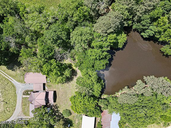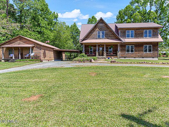This charming, rustic farmhouse sits on 4.65 acres of peaceful country living with an ample fishing pond. The property has tons of history dating back to its original construction in 1925 & the addition was added in 2005. The covered front porch with a swing and sitting area creates a warm and welcoming atmosphere. The spacious living room, with plenty of natural light, and the dining room, with a wood burning stove, offers plenty of space for entertaining guests or relaxing. The kitchen is equipped with stainless steel appliances and has a generous amount of counter space and cabinets. The main level also includes a guest bedroom, full bathroom with a laundry area, and office space.