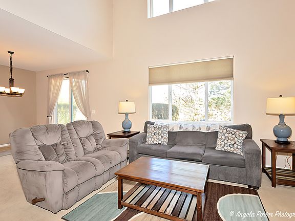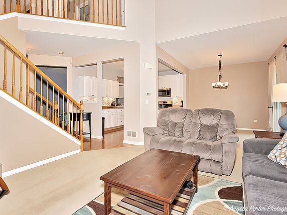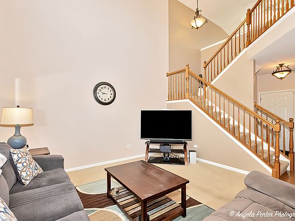 Stunning townhouse in the desirable Legend Lakes offers peaceful views of nature. Open floor plan with volume ceilings in living room! Spacious kitchen with hardwood flooring and ample cabinets and updated back splash. Newer appliances: Microwave, stove, dishwasher, washer & dryer. Dining room with a sliders to the patio & views. The first floor also features nice powder room and den/office that could be used as 3rd bedroom. 2nd floor loft overlooks the living room. Master suite with a full bath, walk-in closet and private balcony facing nature area. Second bedroom and second full bath upstairs complete the 2nd floor. 1st floor laundry w/ extra cabinets. Neutral decor' throughout. Attached two car finished garage with extra insulation. New water heater. Townhouse is approx 1729 sq ft. Close to parks, recreation, shopping, restaurants and entertainment. Quick drive to train for work commute. A must see! Water & Sewer included in HOA fee.