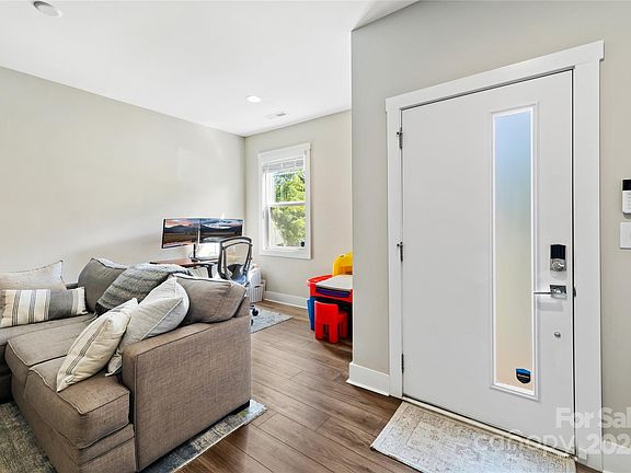 This captivating 3-story townhome in NoDa is turnkey and ready for you to call it home! Boasting 9 foot ceilings throughout youll find a two car garage, comfy den area, full bath, and a storage closet all on the first floor! The second floor (main level) features white oak wood flooring, quartz countertops, premium painted 42" white cabinets, a 30-inch wall mounted chimney hood, a cozy living area, and a terrace!