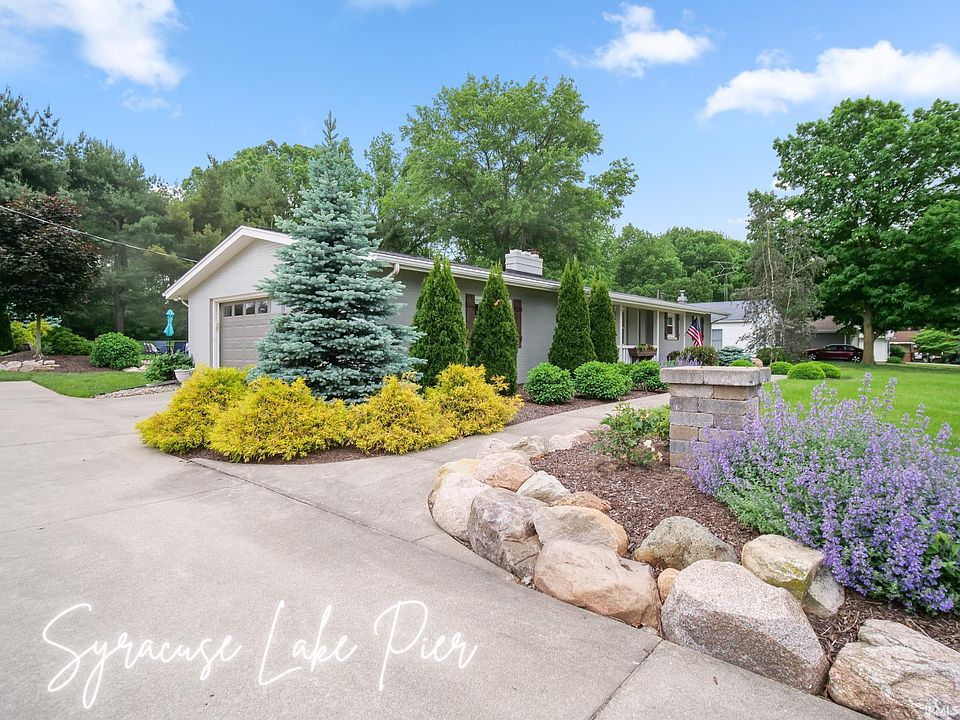 Experience turnkey lake-area living in this beautifully updated, fully furnished home on desirable Northshore Drive. This impeccably maintained ranch offers a rare combination of style, comfort, and convenience—all just steps from deeded access to Syracuse Lake. Set on a double lot with lush green grass, vibrant landscaping, and a large concrete drive, the property offers outstanding curb appeal. Inside, you’ll find a spacious and thoughtfully designed layout featuring three bedrooms, one full bath, and one half bath. The updated eat-in kitchen flows into the dining area, perfect for casual meals or entertaining. Two cozy living spaces—one on the main level with a fireplace and another in the finished lower level—give you flexibility for relaxing or hosting guests. Step out back to enjoy the new patio overlooking the scenic golf course—ideal for outdoor dining, weekend gatherings, or simply unwinding in privacy. The home includes deeded pier access to Syracuse Lake, shared with 4 home owners, with an 8-section pier ready for your boat lift. See location in attached documents! The Syracuse-Wawasee Trail, located just across the street, invites you to explore the area's natural beauty by bike or on foot. Recent upgrades include a new kitchen, windows, flooring, paint, patio, garage door and opener, water heater, whole-house generator, iron filter, lighting, landscaping, and more—delivering move-in-ready peace of mind. Whether you're seeking a stylish primary home, a low-maintenance weekend escape, or an executive retreat, this property offers the best of lake life without the high lakefront price tag.