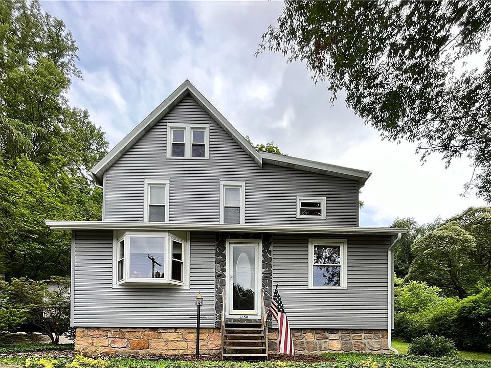 This completely renovated 2 story is nestled on 1.26 private acres with plenty of parking backing on woods! It features a fully equipped and beautiful eat-in kitchen including some original built-ins. The 1st floor family room addition with a custom built in bookshelf and a vaulted ceiling that is a great entertaining space. There are 2 pellet stoves, a 1st floor den – ideal for working from home and a 30x40, 2 story garage that is drywalled and wired – perfect for those wanting a hobby space or could also be turned into an apartment for extra income, plus a large shed. There is a newer, high efficiency furnace and AC, as well as newer windows and electric. Plus a spacious mud room with closet, a bay window and a fruit/wine cellar. All this and a 1-year Guard Home Warranty too!