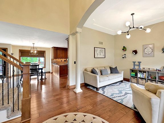 This is it! Fully remodeled by Guthridge Nighswonger, this stunning 2-story home in the desirable Whitetail neighborhood offers quality that stands above the rest. Enjoy handsome curb appeal, a covered front porch, an inviting foyer with two-story ceilings, updated lighting, neutral decor, and tasteful finishes. A flexible space in the front of the home, with high ceilings and a stylish light fixture, is ideal as a formal dining room, living room, or office. Hardwood floors grace the main level, where the family room becomes the heart of the home with its large windows overlooking the backyard and beautiful gas fireplace with a stone surround. Adjacent to the family room, the impressive kitchen is well-suited for any cook, featuring smart design, rich ceiling-height cabinets, a pantry, under cabinet lighting, granite countertops, and stainless-steel appliances. Large windows in the casual dining area provide picturesque views of the composite deck and East-facing backyard, soaking the living spaces with natural light. A powder room for guests is positioned adjacent to the foyer. Upstairs, the spacious primary suite is a serene retreat with large windows that flood the room with light. The en-suite bathroom is a haven of luxury, boasting beautiful cabinetry, granite countertops, a mirrored sliding door, large tile shower, soaker tub, and a walk-in closet. A second-story laundry room adds an extra layer of convenience. Two additional ample-sized bedrooms with large closets and a full bathroom complete the second level. Entertaining is easy in the fully finished basement complete with a rec/family room, bedroom, bathroom, and storage. Large view-out windows along the East basement wall keep the space bright. Outside, the fully-fenced backyard is an entertainer's dream with a composite deck, lush lawn, sport court, and sprinkler system. Save money and gain peace of mind with an impact-resistant roof, new siding, and replacement windows throughout. The quality of the cabinets and finishes throughout the home stands out in the area, surpassing builder grade with replaced baseboards and window/door casements. Located in the highly-touted Andover school district with no remaining special taxes and Sedgwick County general taxes, this home offers an ideal location close to K-96 highway, exercise paths, shopping, dining, schools, and churches. Immaculately maintained and professionally remodeled, this gem is a rare find. Don’t miss the chance to call one of NE Wichita’s most coveted neighborhoods your home!