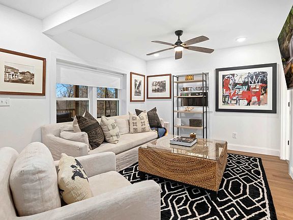 Step inside to find an open-concept living room, kitchen, and dining space, perfect for memorable gatherings. The living room features a large Smart TV with all your favorite streaming channels, plush seating, large windows, and eclectic decor. The fully stocked kitchen has everything you need to prepare a meal or enjoy a good cup of coffee. Downstairs, an additional living space offers more seating and a Smart TV. Outside, enjoy fresh air on one of the 3 outdoor patios: a lower patio with cozy seating, a back patio with beautiful stonework and a grill, and a balcony off the primary bedroom. When it's time to rest, choose from four private bedrooms, each equipped with a Smart TV. The primary bedroom upstairs includes a king-size bed, en-suite bathroom, desk space, and balcony access, while the other bedrooms feature queen-size beds and nearby bathrooms.