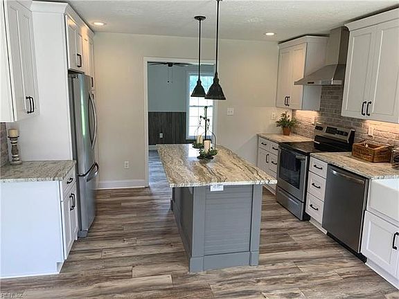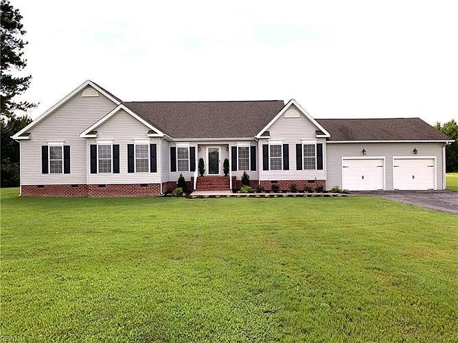 ONLY MINUTES FROM SUFFOLK VA. THIS COMPLETE RE DONE 3 BED ROOM AND 2.5 BATH HOME WITH OVER 2000 GLVA FEATURES CARPET, LAMINATED WOOD AND PAINT THROUGHOUT. ENJOY COZY EVENING BY THE FIREPLACE. OR ENJOYING DINNER IN COUNTRY FEEL KITCHEN FEATURING ALL NEW STAINLESS STEEL APPLIANCES WITH A EXTRA DEEP KITCHEN SINK. GRANITE COUNTER TOPS THROUGHOUT KITCHEN AND ALL 2.5 BATHS. OH! I ALMOST BRAND NEW SIDE BY SIDE FRONT LOADING WASHER AND DRYER WITH GARDEN SINK. ALL THIS ON A SPACIOUS 1 + - ACRE LOT. 1 YEAR HOME WARRANTY BEING OFFER WITH ALL FULL PRICE OFFERS. PURE CRAFTSMANSHIP WAS INSTALLED