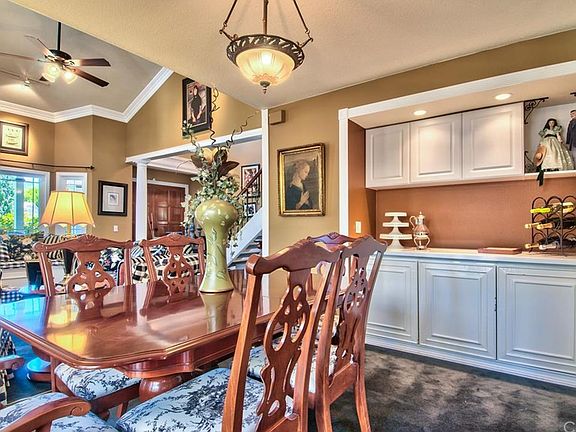 Beautiful South Corona 4 bed/ 2.5 bath pool home sitting on a quarter acre of land. The original owners have made this home truly unique. The formal living room has high ceilings and a custom picture window and has lots of natural light. The formal dining room has a built in buffet and a small sitting area outside the sliding door and a swinging door into the kitchen area. The Kitchen has a built in breakfast nook and opens to the family room with wainscoting and a custom picture window. The downstairs features upgraded baseboard and crown molding along with new windows and glass doors throughout. The downstairs has a bedroom and bath down the hall separate from the rest of the living area. The upstairs has 2 bedrooms with a bathroom along with the Master Bed and Bath. The backyard is perfect for entertaining with a 'pond-like' pool a gazebo and lush plants that add to the privacy. The back patio is inviting with built in seating, a television with wood cover, bbq, sink and fireplace. The backyard has an above ground garden area and a green house. There is no Mello Roos, Taxes are low and there is no HOA! Welcome Home!